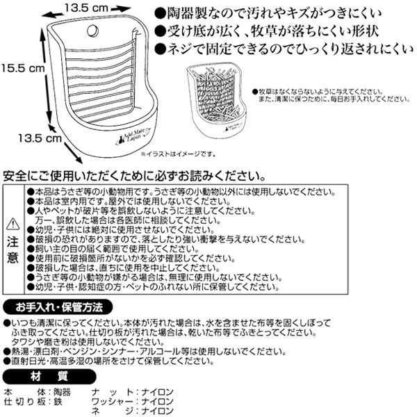 陶器製なので汚れがつきにくく、衛生的。 Add.Mate Lapin アドメイトラパン ポタリー チモシーキープ 牧草 うさぎ用