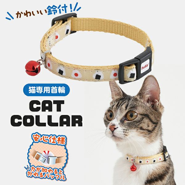 レトロポップをイメージしたデザイン。かわいいオニギリ柄! 【10%OFF!スーパーSALE】猫用首輪 CAT COLLAR オニギリ イエロー【会員様限定】