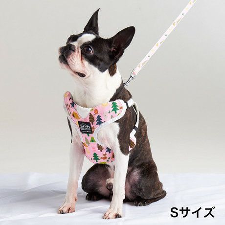 リサイクルポリエステルを使用し、抗菌加工を行った生地を使用。撥水加工で汚れが落ちやすい。容易に付け外しができるワンタッチバックル採用。内側はクッション生地で愛犬の負担を和らげる。可愛いアニマル柄。