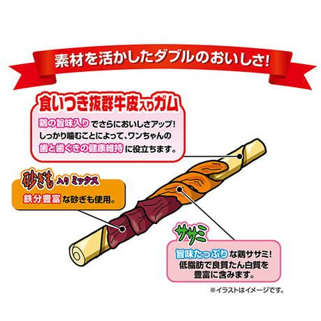 そんな飼い主さんの悩みを解消すべく、両者の長所を併せつササミ巻きガムが誕生しました。