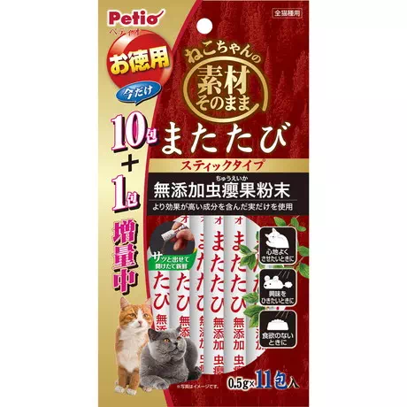 〈ペティオ Petio ねこちゃんの素材そのまま またたびスティック 10包+1包 虫癭果 ちゅうえいか〉