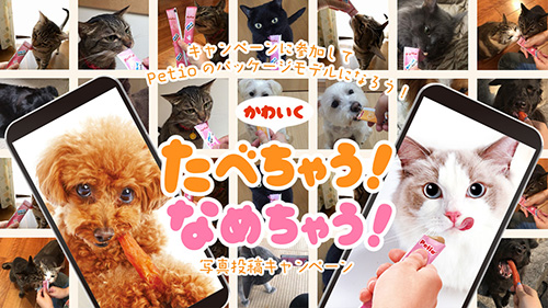 うちの子のおやつを食べている姿を投稿するとPetioのパッケージモデルになれるかも!!